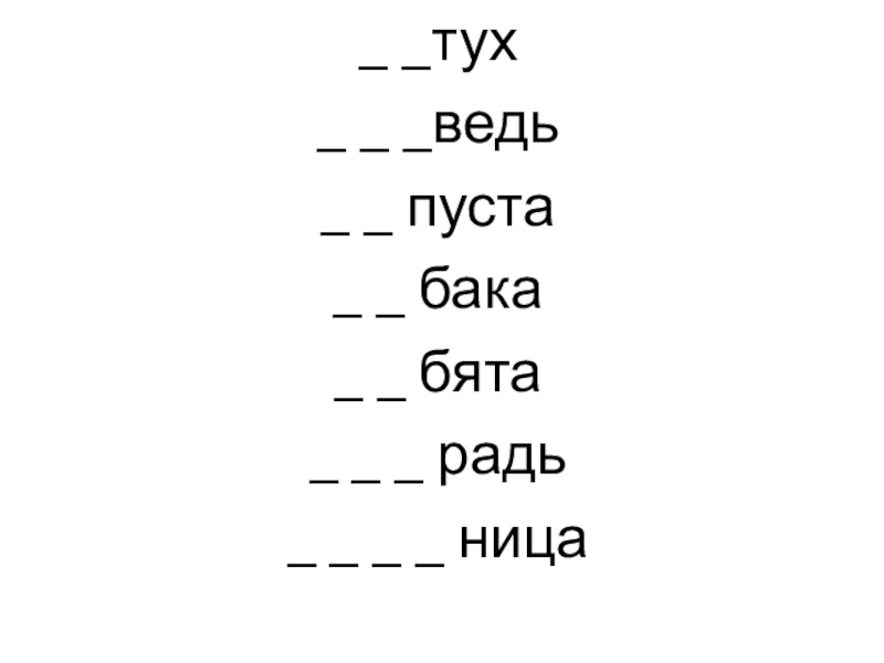 _ _тух_ _ _ведь_ _ пуста_ _ бака_ _ бята_ _ _ радь_ _ _ _ ница