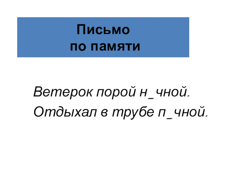 Письмо  по памятиВетерок порой н_чной.Отдыхал в трубе п_чной.