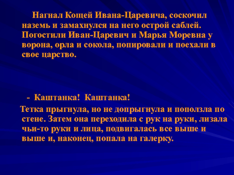 Слайд 6 Нагнал Кощей Ивана-Царевича, соскочил наземь и