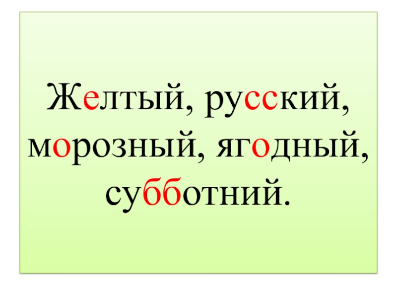 Слайд 2Желтый, русский, морозный, ягодный, субботний.