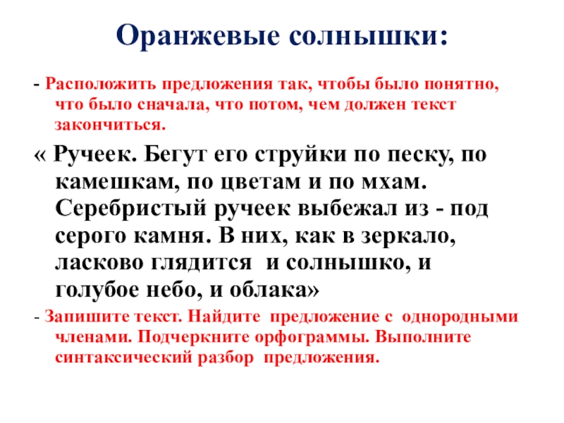 - Запишите текст. Найдите предложение с однородными членами. Подчеркните орфограммы. Выполните синтаксический разбор предложения.