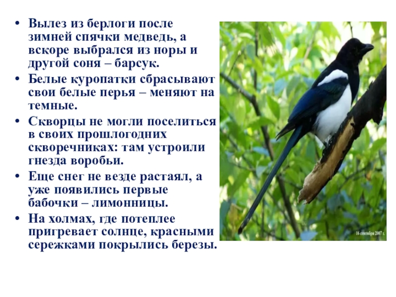 Слайд 12Вылез из берлоги после зимней спячки медведь, а вскоре выбрался из