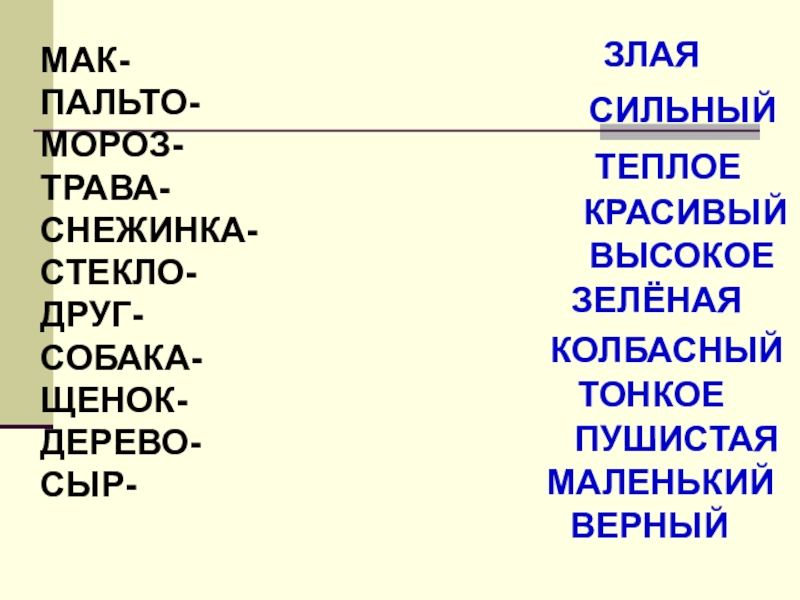 МАК-ПАЛЬТО-МОРОЗ-ТРАВА-СНЕЖИНКА-СТЕКЛО-ДРУГ-СОБАКА-ЩЕНОК-ДЕРЕВО-СЫР-ТЕПЛОЕКОЛБАСНЫЙКРАСИВЫЙТОНКОЕСИЛЬНЫЙВЫСОКОЕПУШИСТАЯЗЕЛЁНАЯЗЛАЯМАЛЕНЬКИЙВЕРНЫЙ