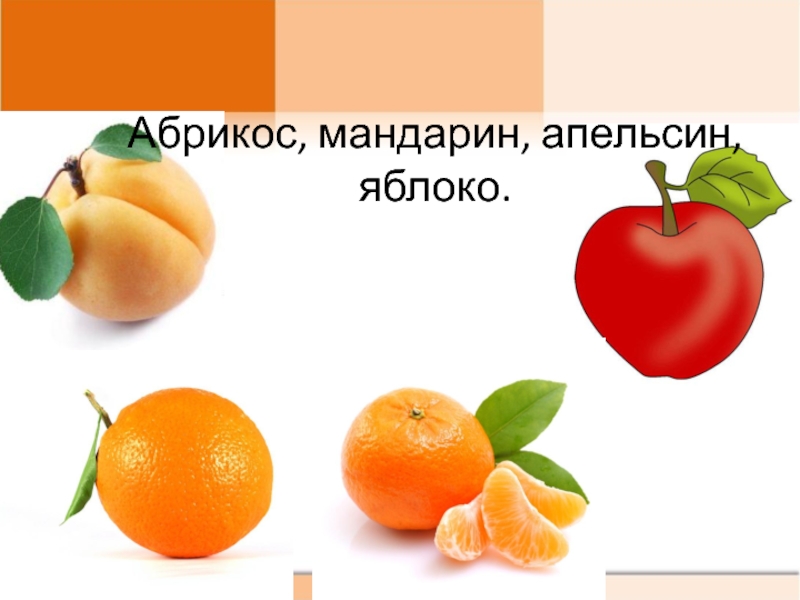 Слайд 10Абрикос, мандарин, апельсин, яблоко.