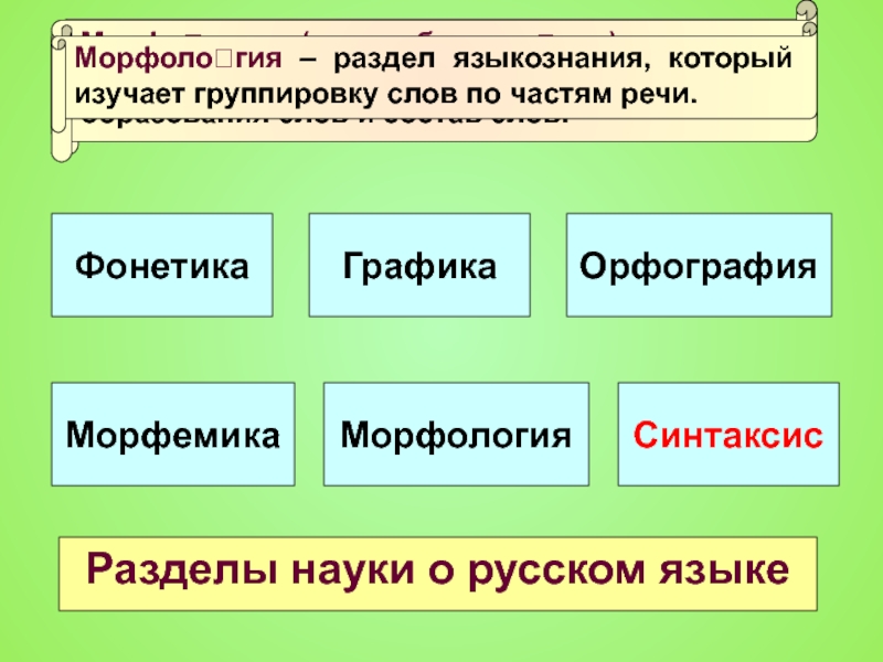Морфология – раздел языкознания, который изучает группировку слов по частям речи.