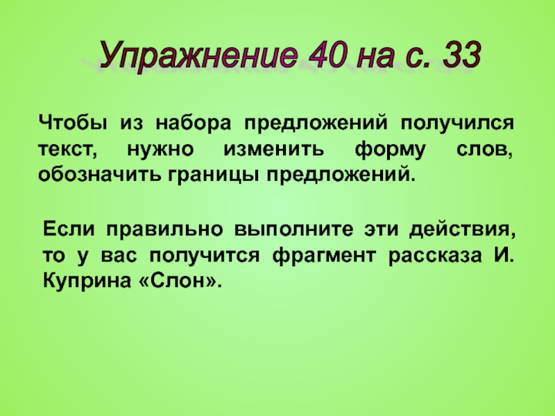 Если правильно выполните эти действия, то у вас получится фрагмент рассказа И. Куприна «Слон».