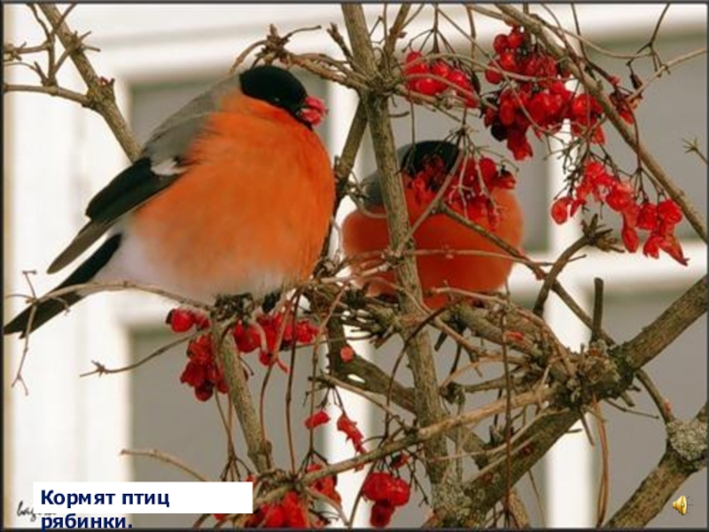 Наступил зимние деньки.Прыгают по дороге воробей, ищет крошки. Мёрзнет зи-мующие птицы.
