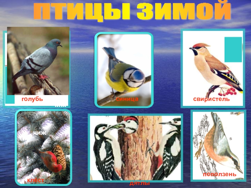 З.мой в л.су ж.-вут птицы. Кл.сты выводят пт.нцов. Звонко п.ёт чиж.
