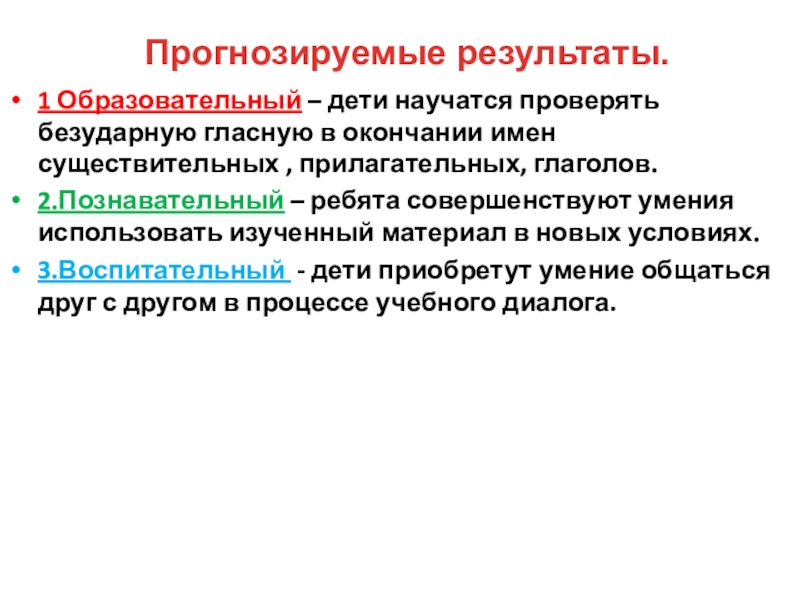 Прогнозируемые результаты.