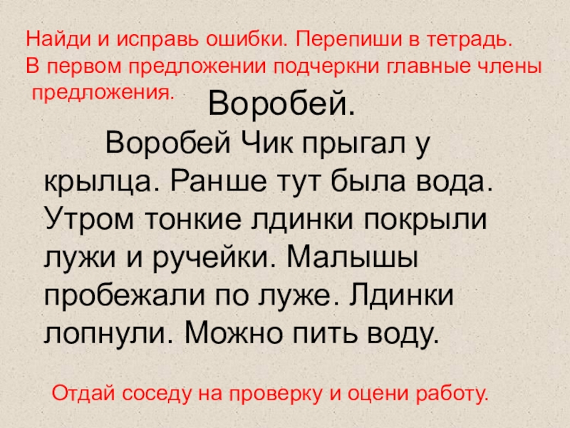 Найди и исправь ошибки. Перепиши в тетрадь.