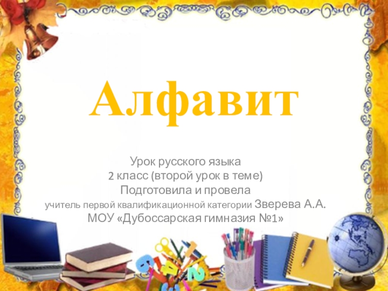 АлфавитУрок русского языка 2 класс (второй урок в теме)Подготовила и провела учитель первой квалификационной категории Зверева А.А.МОУ