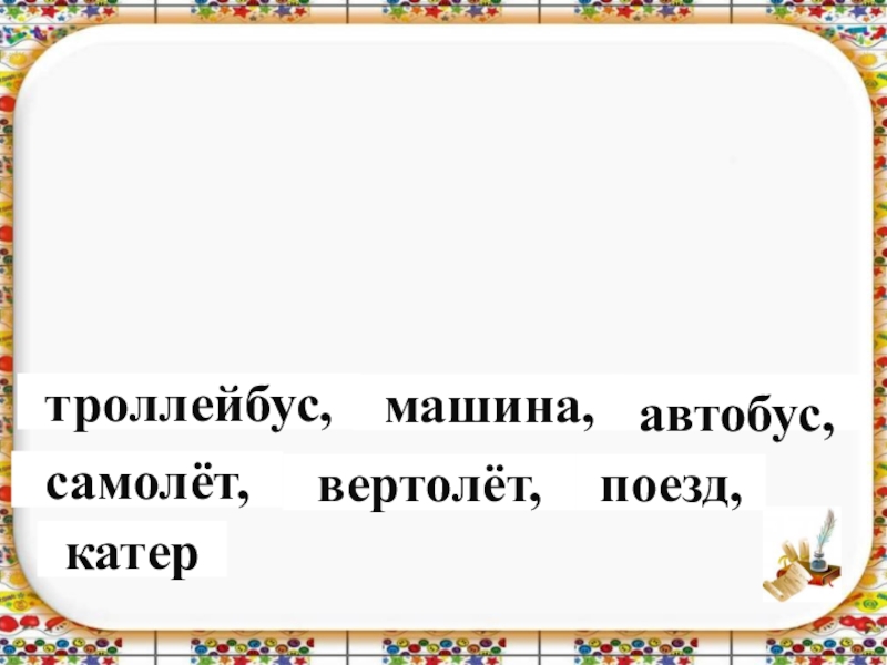 катервертолёт,самолёт,автобус, машина,троллейбус,поезд,