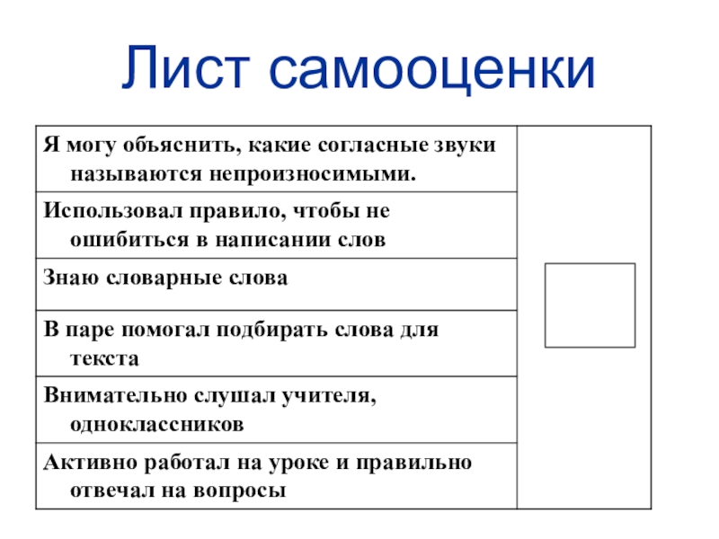 Слайд 10Лист самооценки