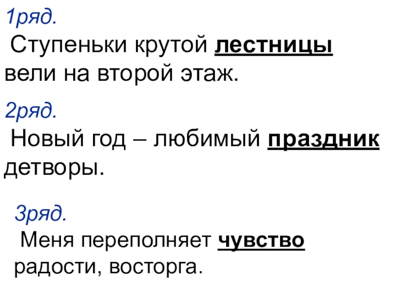 Слайд 91ряд. Ступеньки крутой лестницы вели на второй этаж.