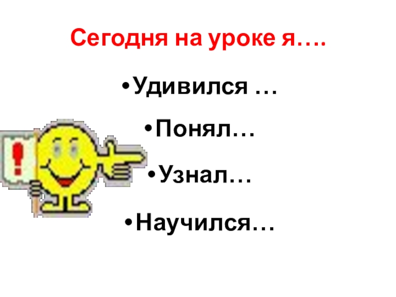 Сегодня на уроке я….Удивился …Понял…Узнал…Научился…