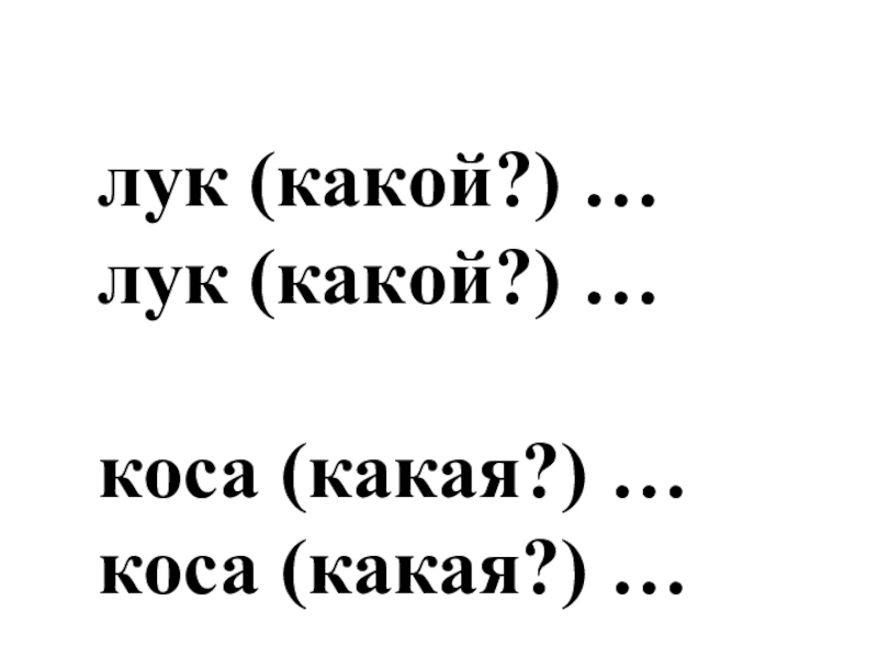 лук (какой?) …лук (какой?) …       коса (какая?) …коса (какая?) …