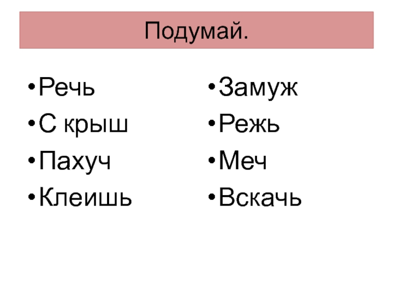 Подумай.РечьС крышПахучКлеишьЗамужРежь МечВскачь
