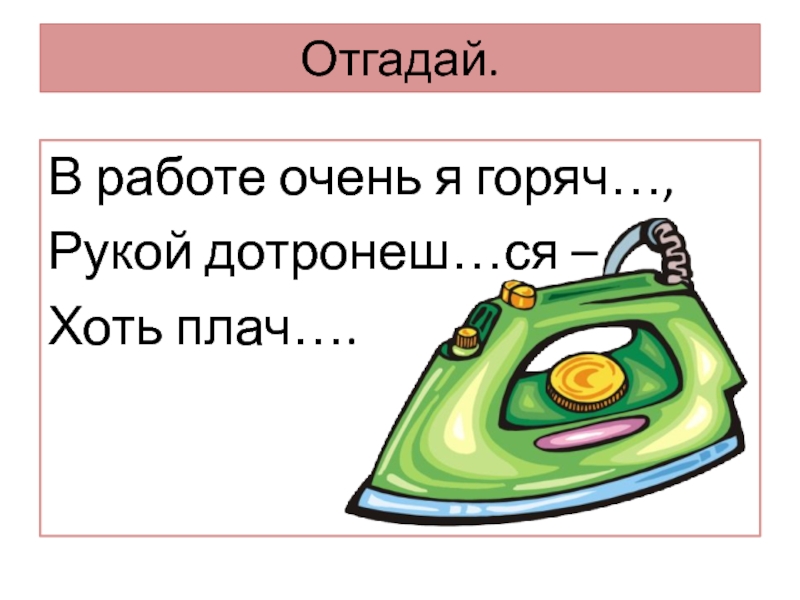 Отгадай.В работе очень я горяч…,Рукой дотронеш…ся –Хоть плач….