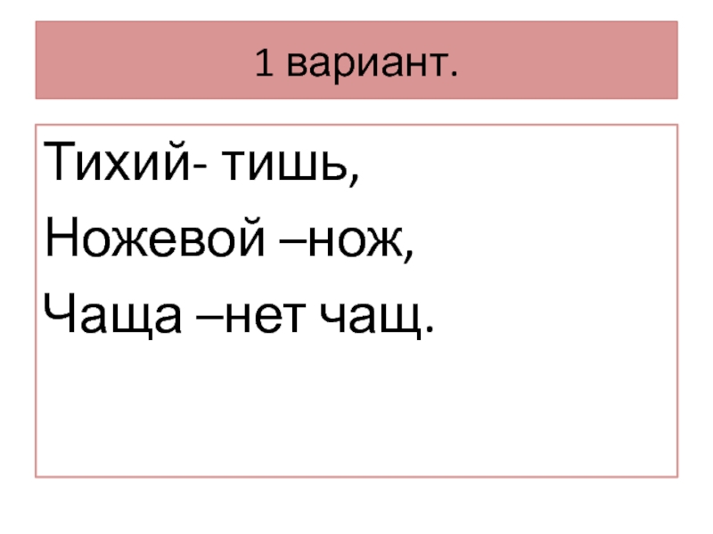 1 вариант.Тихий- тишь,Ножевой –нож,Чаща –нет чащ.