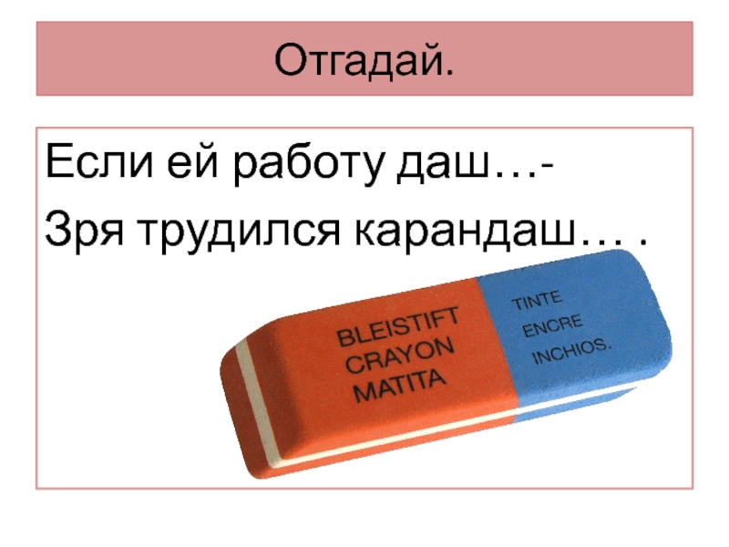 Отгадай. Если ей работу даш…-Зря трудился карандаш… .