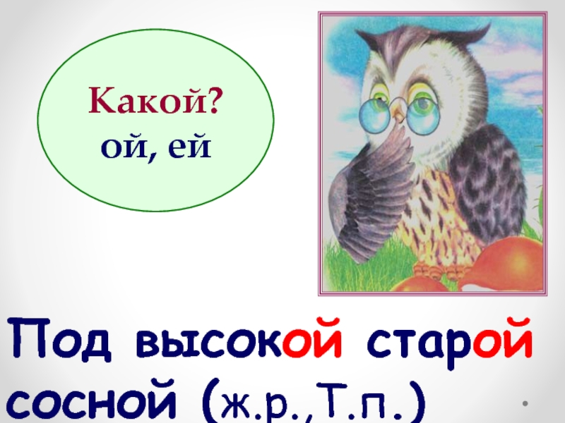 Под высокой старой сосной (ж.р.,Т.п.) Какой?ой, ей