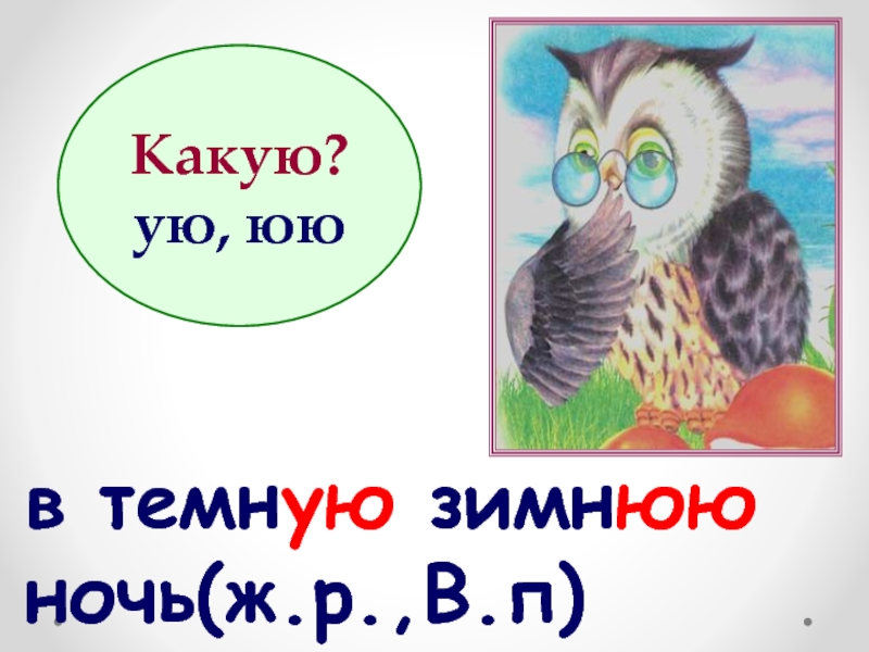 Слайд 12в темную зимнюю ночь(ж.р.,В.п)
