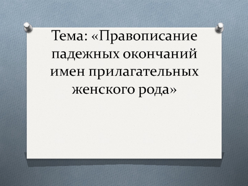 Слайд 2Тема: «Правописание падежных окончаний имен прилагательных женского рода»