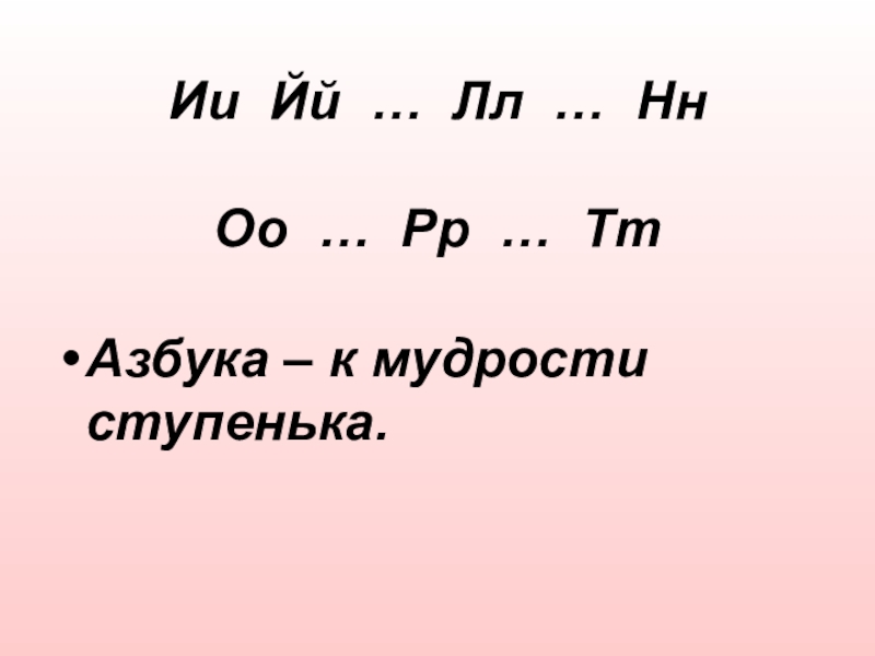 Ии Йй … Лл … Нн  Оо … Рр … ТтАзбука – к мудрости ступенька.