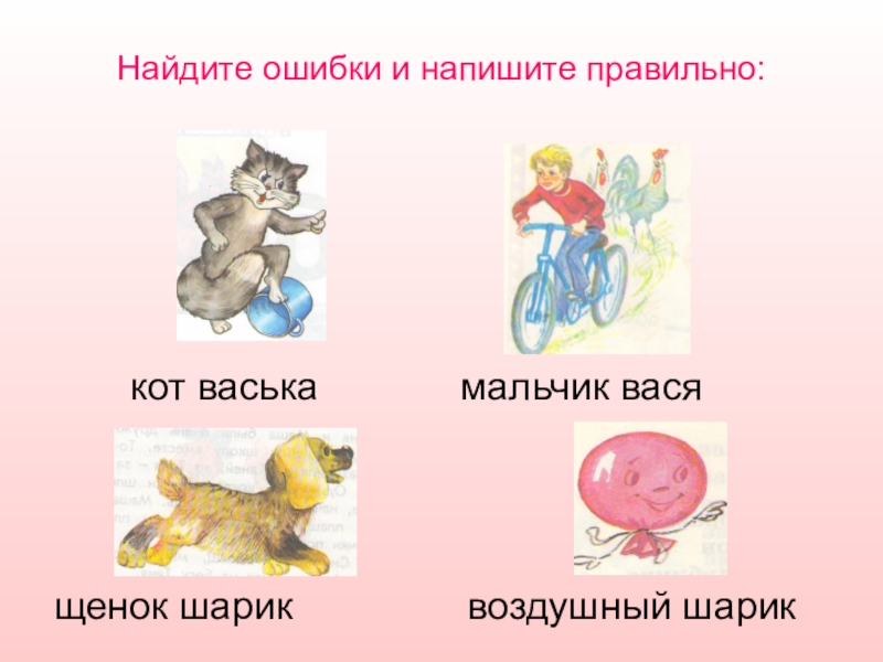 Найдите ошибки и напишите правильно:щенок шарик        воздушный шарик