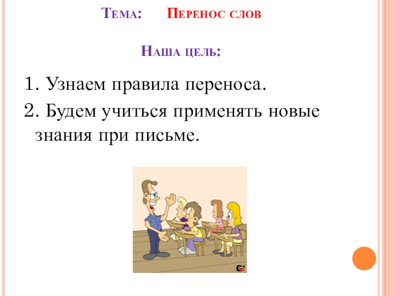 Слайд 6Тема: Перенос слов Наша цель: