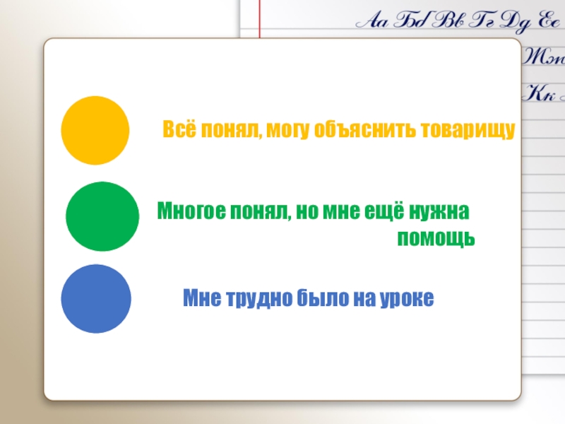 Мне трудно было на уроке Всё понял, могу объяснить товарищуМногое понял, но мне ещё нужна