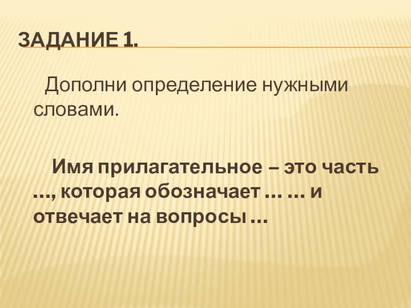 Задание 1.    Дополни определение нужными словами.    Имя прилагательное – это часть