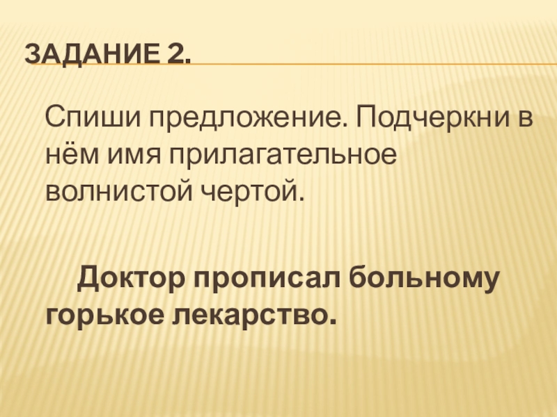 Задание 2.  Спиши предложение. Подчеркни в нём имя прилагательное волнистой чертой.    Доктор прописал