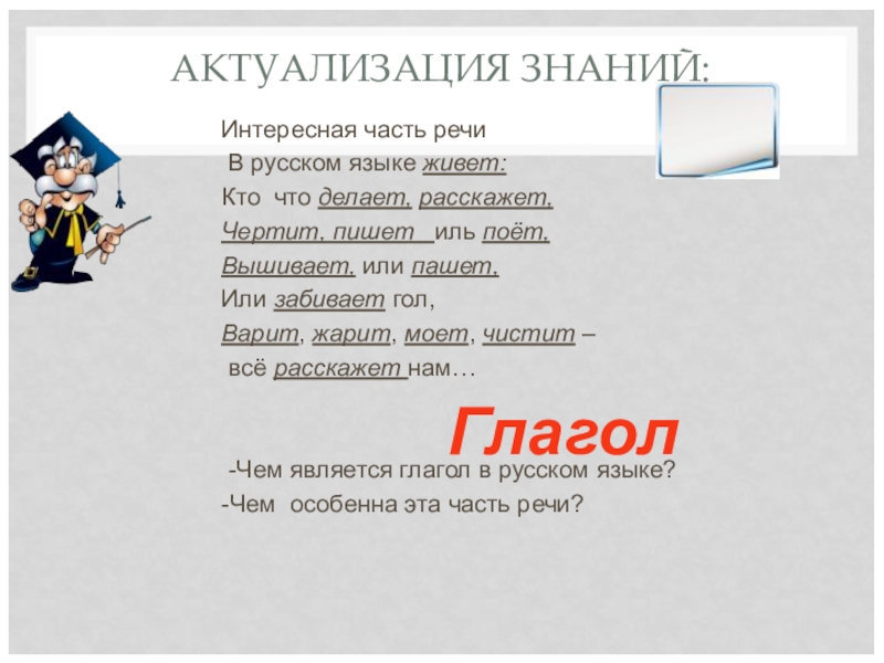 -Что помогло вам определить в тексте глагол?