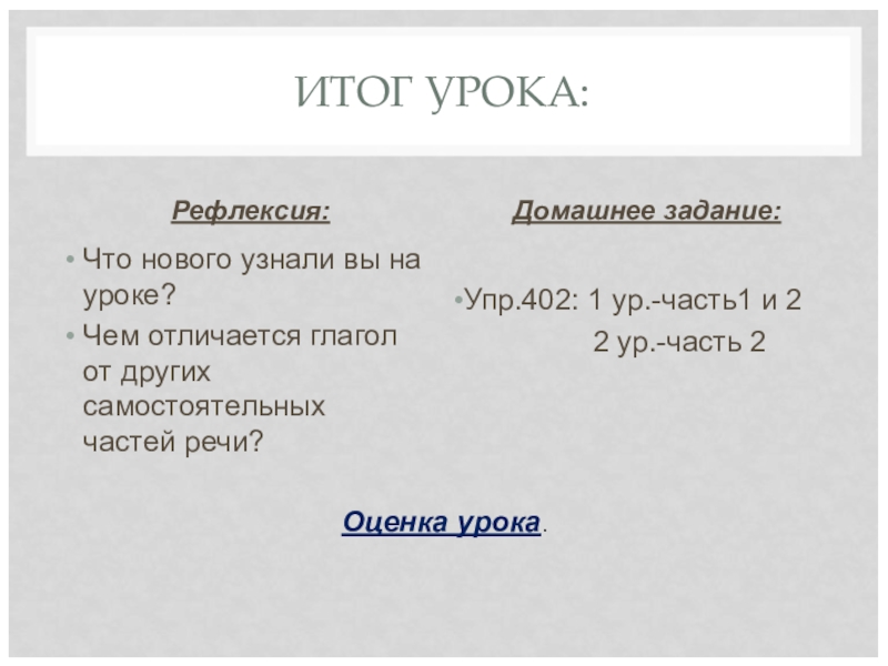 Оценка урока.