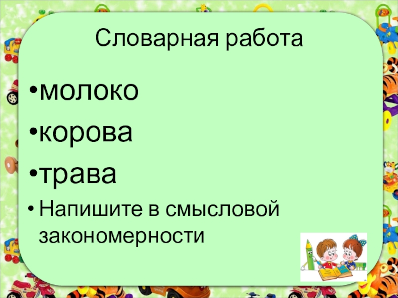 Словарная работамолококороватраваНапишите в смысловой закономерности