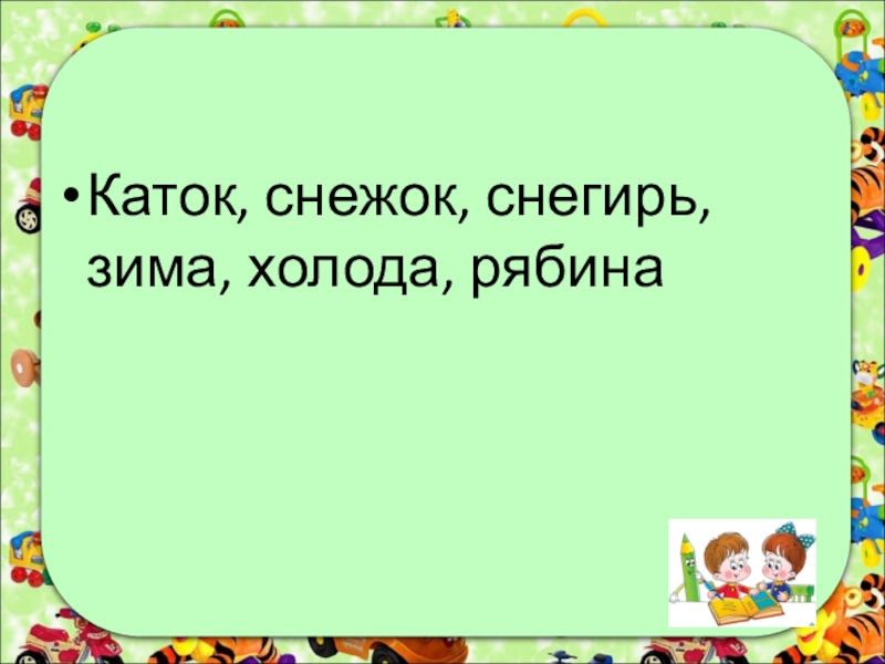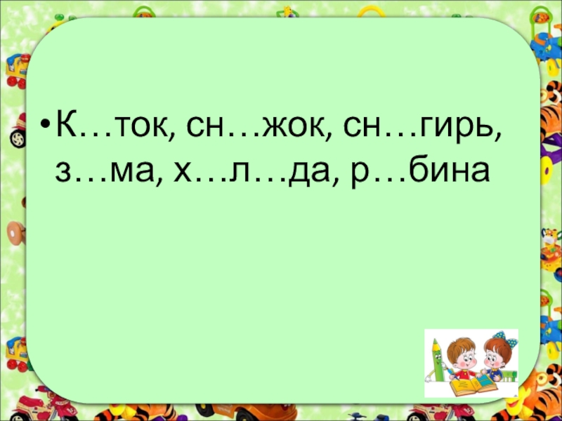 К…ток, сн…жок, сн…гирь, з…ма, х…л…да, р…бина