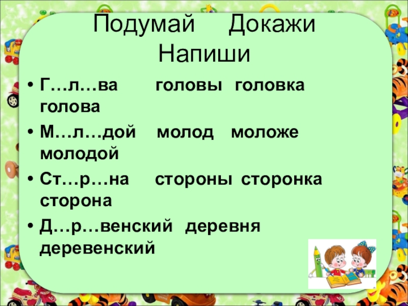 Подумай   Докажи     НапишиГ…л…ва     головы  головка