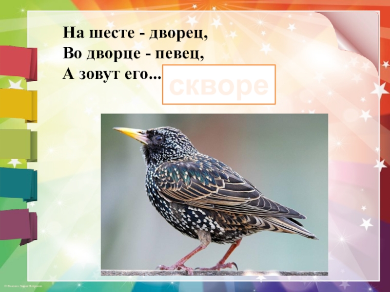 На шесте - дворец, Во дворце - певец, А зовут его...скворец