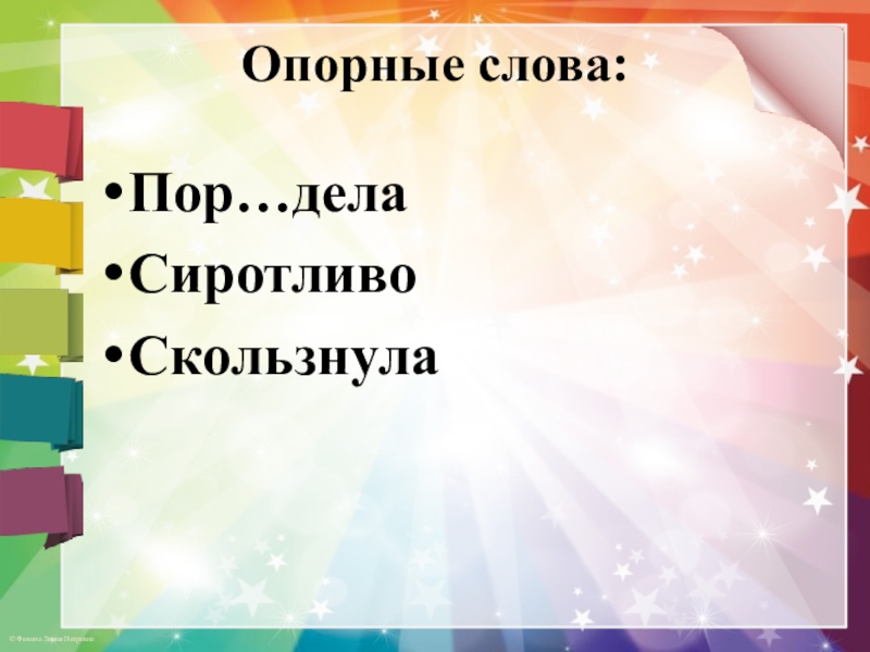 Опорные слова:  Пор…делаСиротливоСкользнула