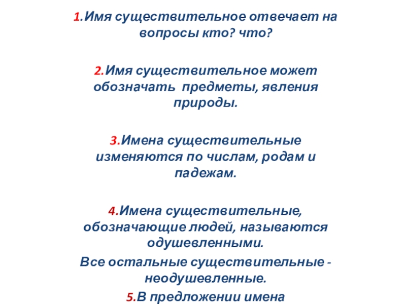 4.Имена существительные, обозначающие людей, называются одушевленными.