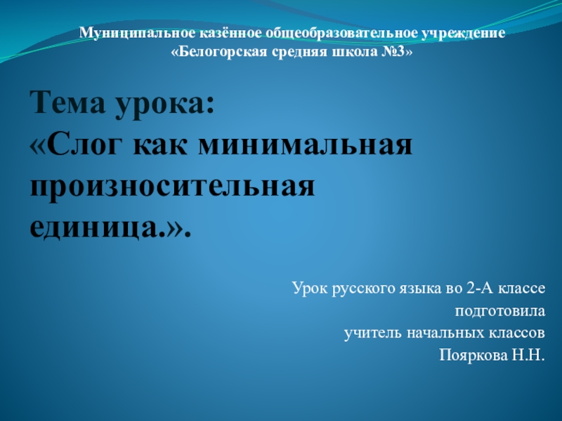 Муниципальное казённое общеобразовательное учреждение «Белогорская средняя школа №3»