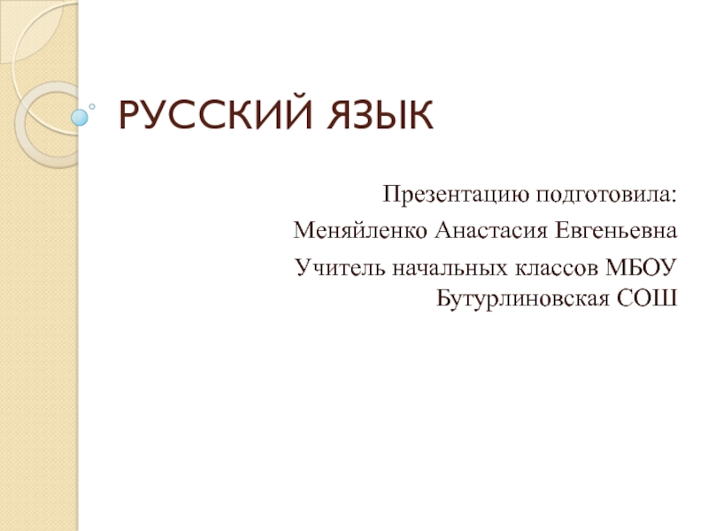 РУССКИЙ ЯЗЫКПрезентацию подготовила: Меняйленко Анастасия ЕвгеньевнаУчитель начальных классов МБОУ Бутурлиновская СОШ