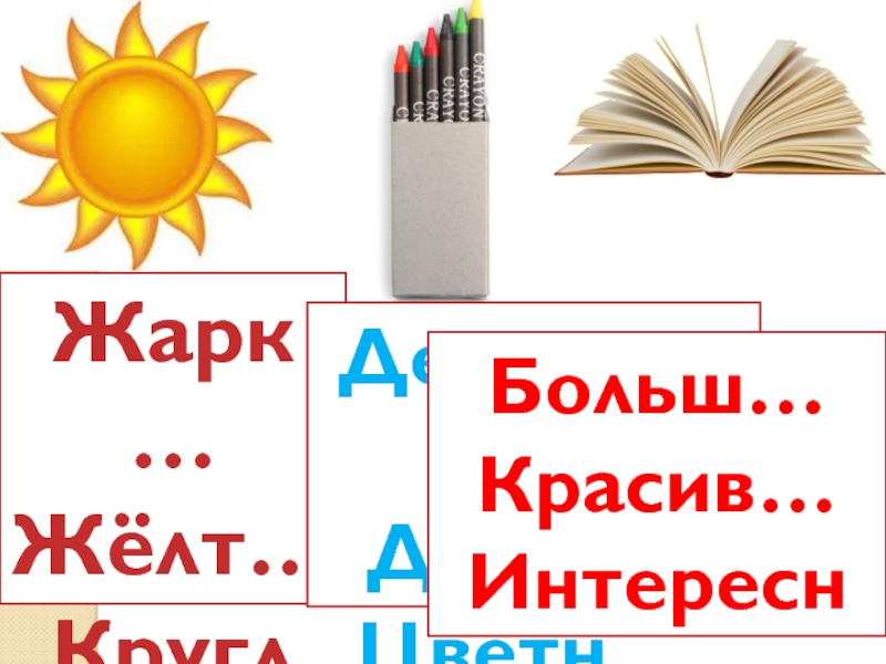 Жарк…Жёлт…Кругл …Деревянн…Длинн…Цветн …Больш…Красив…Интересн …