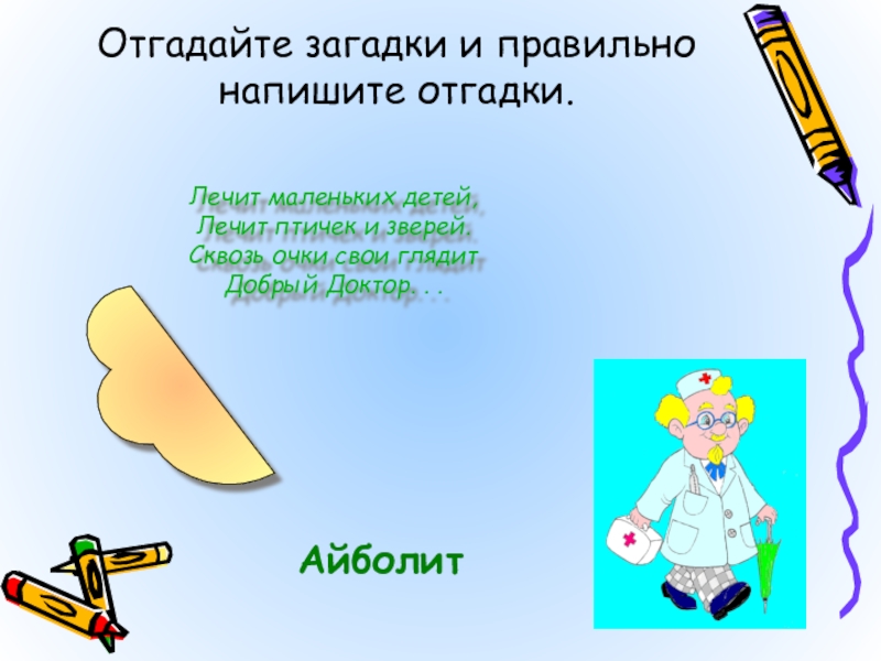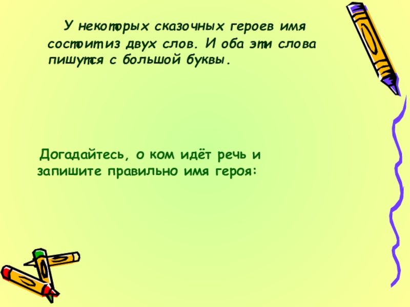 Догадайтесь, о ком идёт речь и запишите правильно имя героя: