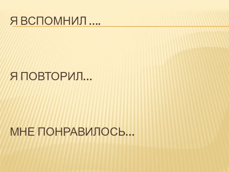 Я ВСПОМНИЛ ….    Я ПОВТОРИЛ…    МНЕ ПОНРАВИЛОСЬ…