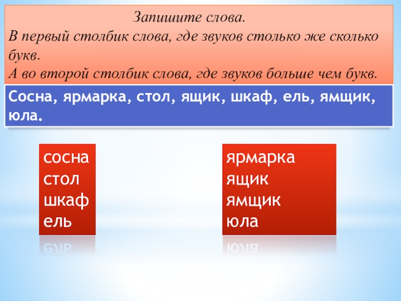 Сосна, ярмарка, стол, ящик, шкаф, ель, ямщик, юла.