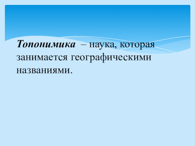Слайд 10Топонимика – наука, которая занимается географическими названиями.