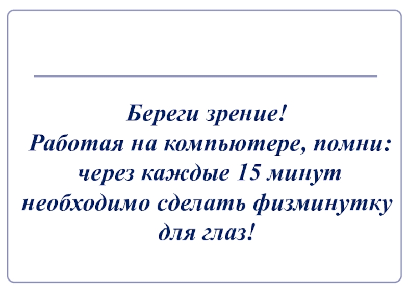 Береги зрение! Работая на компьютере, помни: через каждые 15 минут необходимо сделать физминутку для глаз!