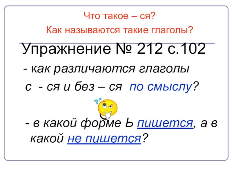 Что такое – ся?Как называются такие глаголы?       Упражнение № 212 с.102